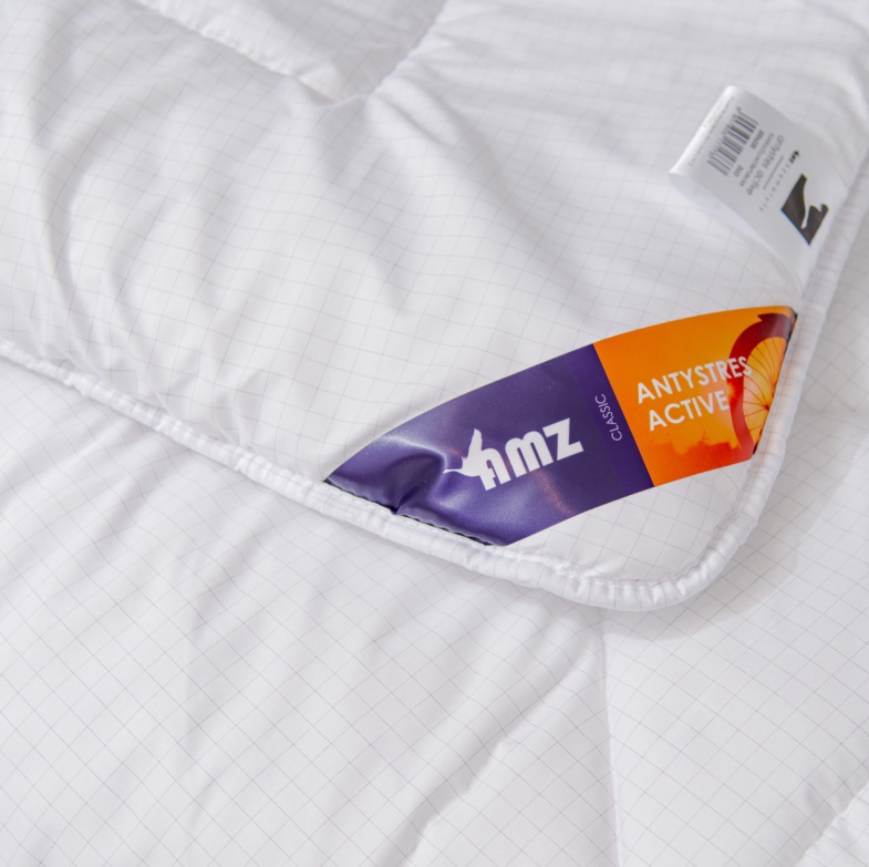 Kołdra antystres active 180×200 AMZ marki AMZ została wypełniona materiałem DreamFill z drobnych spiralnie skręconych włókien poliestrowych pokrytych silikonem, dzięki czemu są bardziej puszyste oraz dłużej zachowują swój pierwotny kształt. Włókno posiada bardzo dobry współczynnik termoizolacji, zapewniając ciepło przy zachowaniu niskiej wagi wyrobu. Optymalna cyrkulacja powietrza pozwala ciału oddychać i optymalizować temperaturę podczas snu. Materiał pokryciowy to nowoczesna mikrofibra z dodatkiem włókien węglowych – to połączenie dobroczynnie oddziałuje na organizm poprzez regulację ładunków elektrycznych. Sen jest bardziej efektywny i głębszy. Kołdra antystres active 180×200 AMZ pikowana na nowoczesnych maszynach, gwarantujących równomierne rozłożenie wypełnienia. Produkt starannie wykończony, wyprodukowany z najwyższej jakości materiałów. Zapewnia odpowiednią cyrkulację powietrza oraz optymalny poziom wilgotności, a więc niesprzyjające warunki do rozwój roztoczy oraz innych drobnoustrojów. Produkt antyalergiczny.