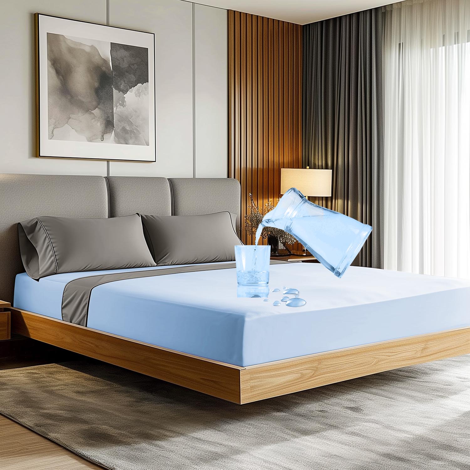 Ochronne prześcieradło z gumką Artykuł SG spełnia rolę prześcieradła i ochraniacza jednocześnie. Wykonane jest tak jak standardowe prześcieradło z gumką. Składa się z dwóch rodzajów materiałów: tkaniny jerseyowej z ochronną warstwą poliuretanową (PU) i cienkiej dzianiny jerseyowej doszywanej z boku ochraniacza. Zaletą wyrobu jest zdolność do przepuszczania pary wodnej (oddychania). Tkanina posiada miększą i delikatniejszą strukturę niż ochraniacz oraz membranę regulującą temperaturę ciała, przez co gwarantuje wygodne spanie bez odczuwania ciepła. Poza tymi atutami posiada wszystkie właściwości ochraniacza (nie przepuszcza kurzu, roztoczy, cieczy itp.). Można używać go z elastycznymi kocykami oraz stosować dla dzieci. Wyrób wykonywany jest w sześciu kolorach (biały można prać w temp. 95oC, pozostałe kolory w temp 60oC). Produkt jest alternatywą dla standardowego prześcieradła w połączeniu z ochraniaczem. Ochronne prześcieradła z gumką wyprodukowano z tkanin posiadających certyfikat.