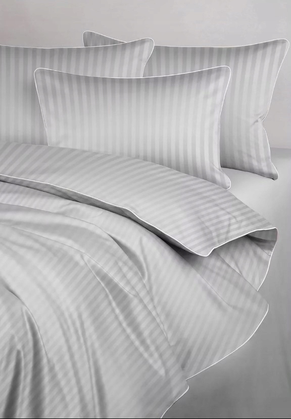 Pościel z adamaszku 200×200 szary jasny z białą lamówką