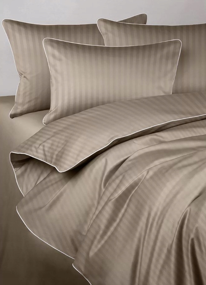 Pościel adamaszkowa 200×220 San Antonio taupe z białą lamówką