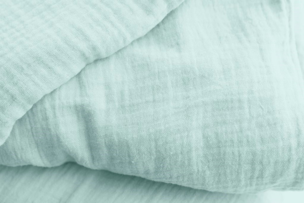 KOMPLET POŚCIELI BAWEŁNIANEJ MUŚLIN (poszwa 160×200 cm – 1 szt., poszewki – 70×80 cm – 2 szt.) Muslin dwuwarstwowy Muślina, muślina dwuwarstwowa Rozmiar (cm) – 220×200-1, 70×80-2 Kolor / wzór – miętowy 33 Gramatura g/m2 – 150 Skład materiału – 1 bawełna Certyfikat OEKO-TEX – Tak