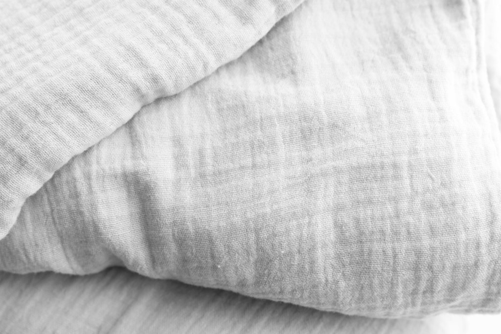 KOMPLET POŚCIELI BAWEŁNIANEJ MUŚLIN (poszwa 160×200 cm – 1 szt., poszewki – 70×80 cm – 2 szt.) Muslin dwuwarstwowy Muślina, muślina dwuwarstwowa Rozmiar (cm) – 220×200-1, 70×80-2 Kolor / wzór – szary 42 Gramatura g/m2 – 150 Skład materiału – 1 bawełna Certyfikat OEKO-TEX – Tak