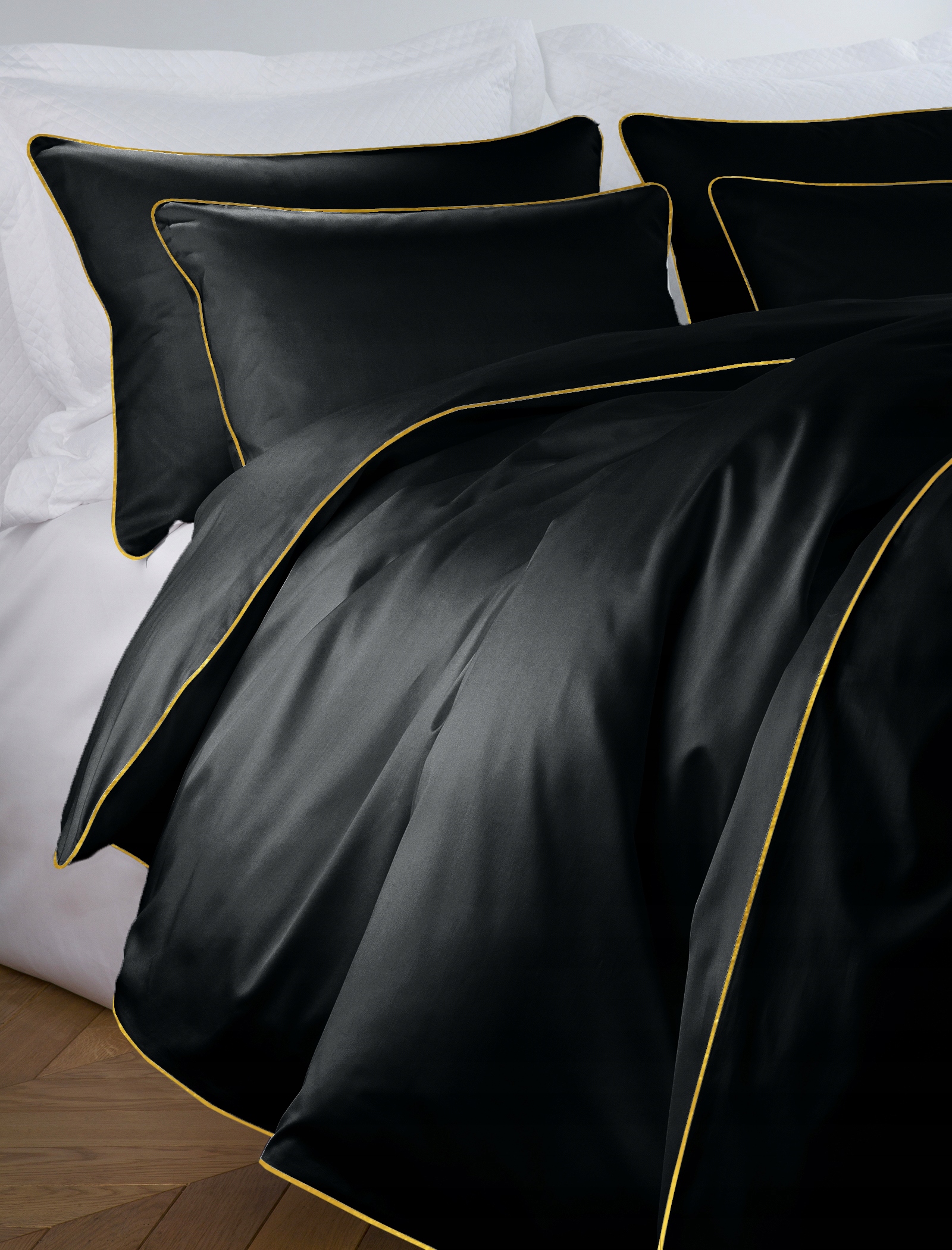 Pościel satynowa 200×200 San Antonio czarna ze złotą lamówką