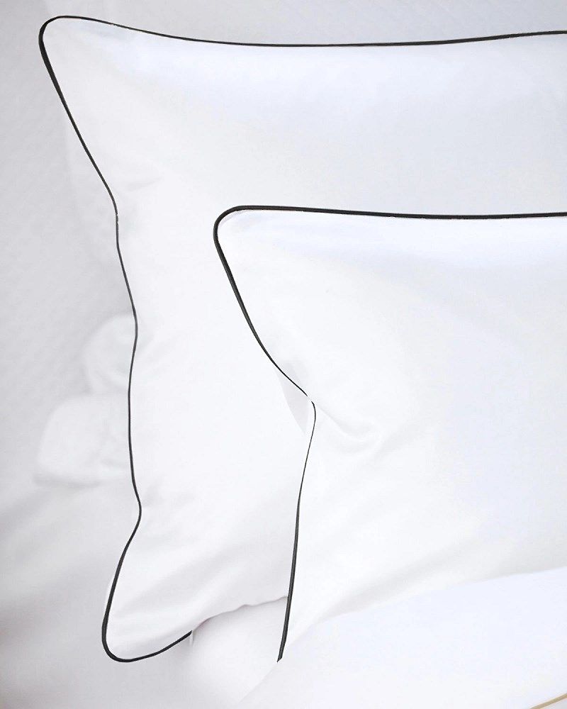 Pościel satyna bawełniana 160×200 z czarną lamówką Maro Home. Jest to piękna pościel satynowa w kolorze białym z czarną lamówką. Zaprojektowana i uszyta w Polsce z wysokiej jakości satyny bawełnianej jest doskonale miękka i delikatna w dotyku nawet po długim użytkowaniu. Każdy komplet to niepowtarzalna wersja autorska, a kompozycja kolorów sprawia, że produkt pasuje do każdego wnętrza, zarówno klasycznego jak i modernistycznego. Pościel jest niezwykle trwała i zachowuje nasycenie kolorów nawet po wielu praniach. Produkt posiada certyfikat Oeko-Tex Standard 100, który gwarantuje, że tkanina użyta do produkcji pościeli jest wolna od substancji mających negatywny wpływ na użytkujących. Pościel pakowana jest w ozdobne pudełko wykonane z papieru z recyklingu, dzięki któremu będzie idealnym pomysłem na prezent.