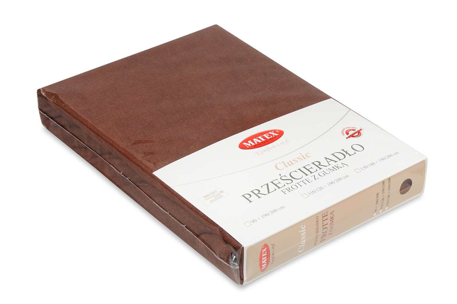 Prześcieradło frotte CLASSIC z gumą na materac roz. 150/160×190/200 cm Rozmiar (cm) – 150/160×190/200×20 Kolor / wzór – brąz 18 Gramatura g/m2 – 170 Skład materiału – 0,82 bawełna, 18% poliester Certyfikat OEKO-TEX – Tak