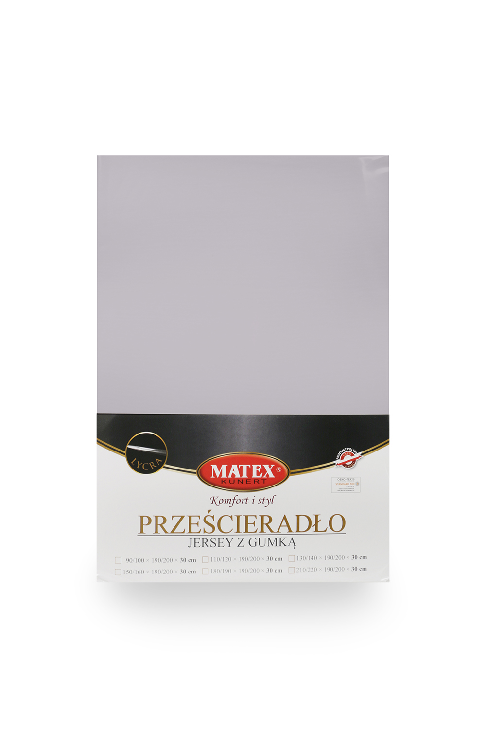 Prześcieradło jersey z lycrą z gumą na materac roz. 210/220×190/200 cm Rozmiar (cm) – 210/220×190/200×30 Kolor / wzór – szary 42 Gramatura g/m2 – 190 Skład materiału – 0,965 bawełna, 3,5% lycra Certyfikat OEKO-TEX – Tak